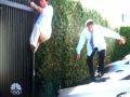 Empleados haciendo Parkour en la oficina.